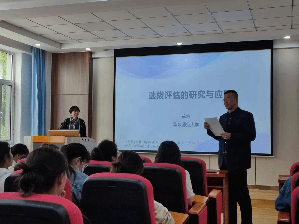 孟慧教授以“选拔评估的研究与应用”为题,系统地介绍了《A century of selection》的主要内容,从该领域研究现状入手,详细介绍了选拔系统的设计、使用及评估方法,并鼓励同学们要从中国的实际出发,进行理论创新、技术创新,增强文化自信,开发适合于我国的心理测评工具。