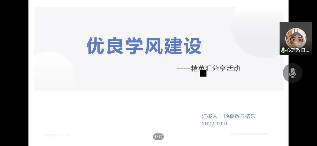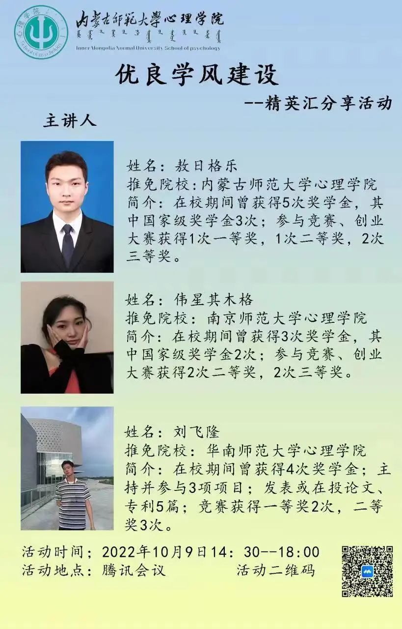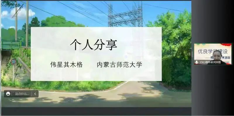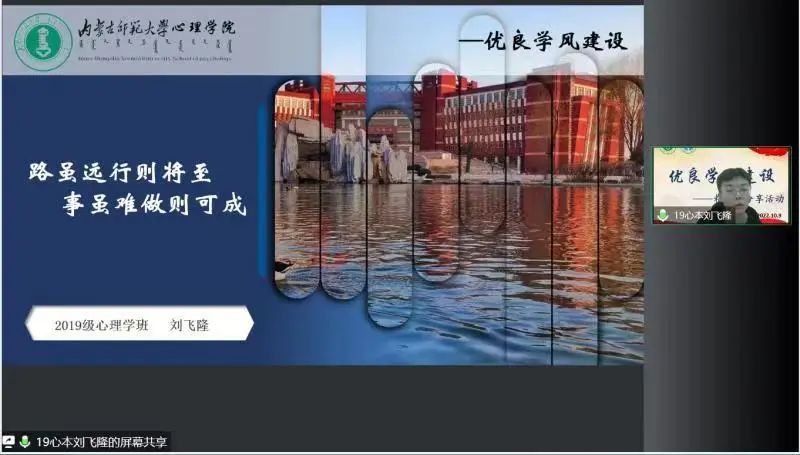 勤学如春起之苗,不见其增,日有所长:辍学如磨刀之石,不见其损,日有所亏。没有知识的滋养,心灵易贫瘠,灵魂易空虚。对待学习,要博学之,审问之,慎思之,明辨之,笃行之。为进一步加强bat365优良学风建设,bat365中文官方网站于10月9日下午三点在线上举办优良学风建设-精英汇分享活动。本次会议由团总支书记刘敏主持,敖日格乐、刘飞隆、伟星其木格进行分享。