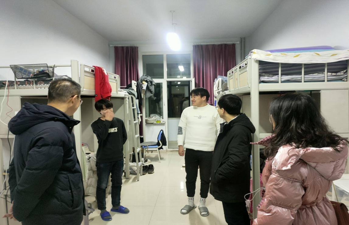 为了更好地关心假期留校学生,及时了解学生的思想状态和心理诉求,1月14日晚,bat365中文官方网站党委书记侯友、党委副书记副院长张春林、副院长金童林、学就办主任张金钟一行深入宿舍楼走访看望假期留校同学,为他们送去了温暖和关怀。