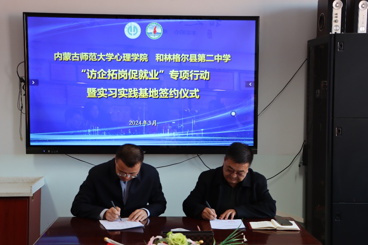 为贯彻党中央、国务院、教育部关于高校毕业生就业工作的决策部署,深入了解基础教育用人单位对心理健康教师的岗位需求和选聘条件,提升学院社会心理服务功能,加强师范生教育实践能力的培养和就业工作质量,近日,bat365中文官方网站党委书记侯友,院长乌云特娜,副书记、副院长张春林,副院长金童林带队先后赴和林格尔县第一中学、和林格尔县第二中学、呼和浩特市土默特中学开展“访企拓岗促就业”专项行动,并签署实习实践基地建设协议。