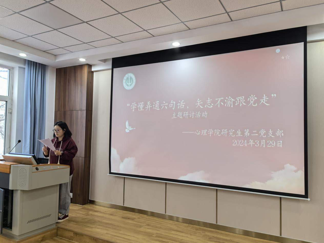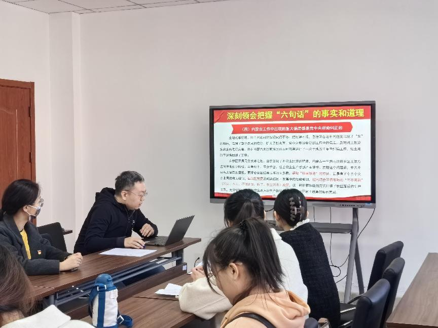 3月29日,bat365中文官方网站研究生第一党支部开展“学懂弄通六句话,矢志不渝跟党走”主题党日活动。党支部书记梁宏宇带领大家共同学习了“六句话”的事实和道理,并鼓励大家要将把国家和自治区重大战略部署与日常学习和科研工作相结合,不断提高责任意识和担当意识,发挥党员的先锋模范作用,为学院事业发展贡献力量。