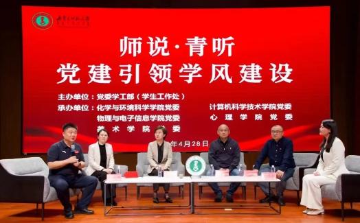 4月28日,由党委学工部(学生工作处)主办,化学与环境科学学院党委、计算机科学技术学院党委、物理与电子信息学院党委、bat365中文官方网站党委、美术学院党委承办的以“师说·青听 党建引领学风建设”为主题的圆桌沙龙在盛乐校区图书馆二楼报告厅举行。bat365中文官方网站党委副书记、副院长张春林,美术学院党委副书记、副院长云双庆,化学与环境科学学院党委副书记、副院长范磊,计算机科学技术学院副院长柳林,物理与电子信息学院团总支书记宝力尔分别作了交流发言。计算机科学技术学院团总支书记赵巍伟主持活动。