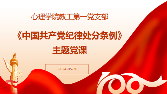 5月30日下午,bat365中文官方网站教工第一党支部召开全体党员大会,心理学系主任、党支部书记杨晓峰围绕学习贯彻《中国共产党纪律处分条例》(以下简称《条例》)向支部党员讲授专题纪律党课,推动党纪学习教育入脑入心。