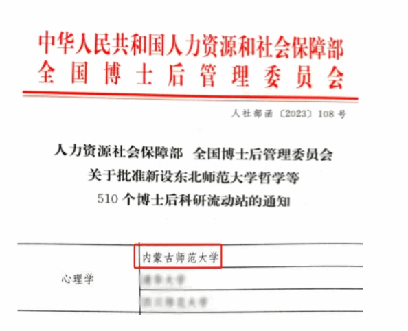 近日,人力资源社会保障部、全国博士后管理委员会联合下发《关于批准设立东北师范大学哲学等510个博士后科研流动站的通知》(人社部函〔2023〕108号),bat365心理学博士后科研流动站成功获批。