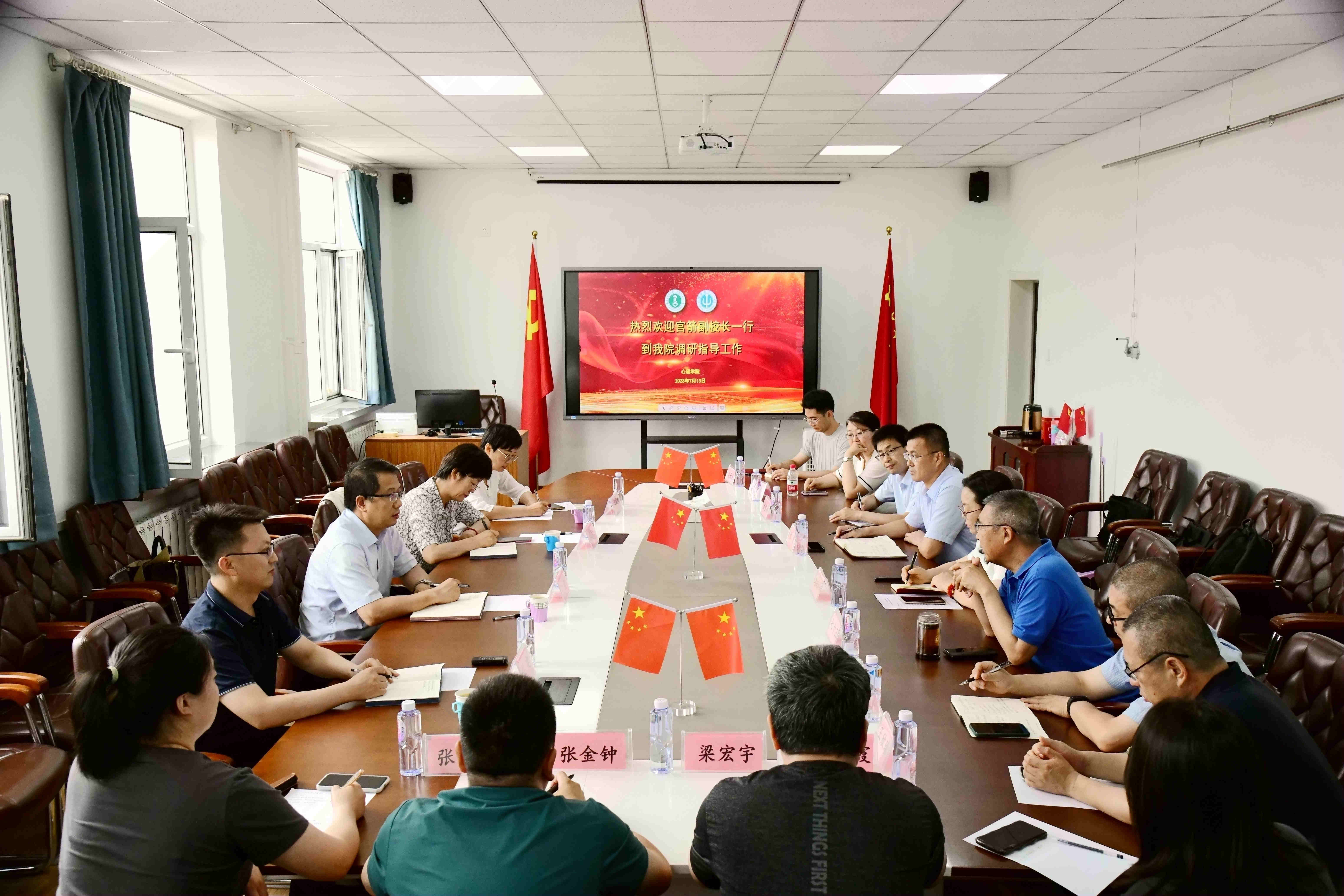 7月13日下午,校党委委员、副校长宫箭深入bat365中文官方网站调研指导工作,相关部门负责同志、学院领导班子和教师代表参加调调研。