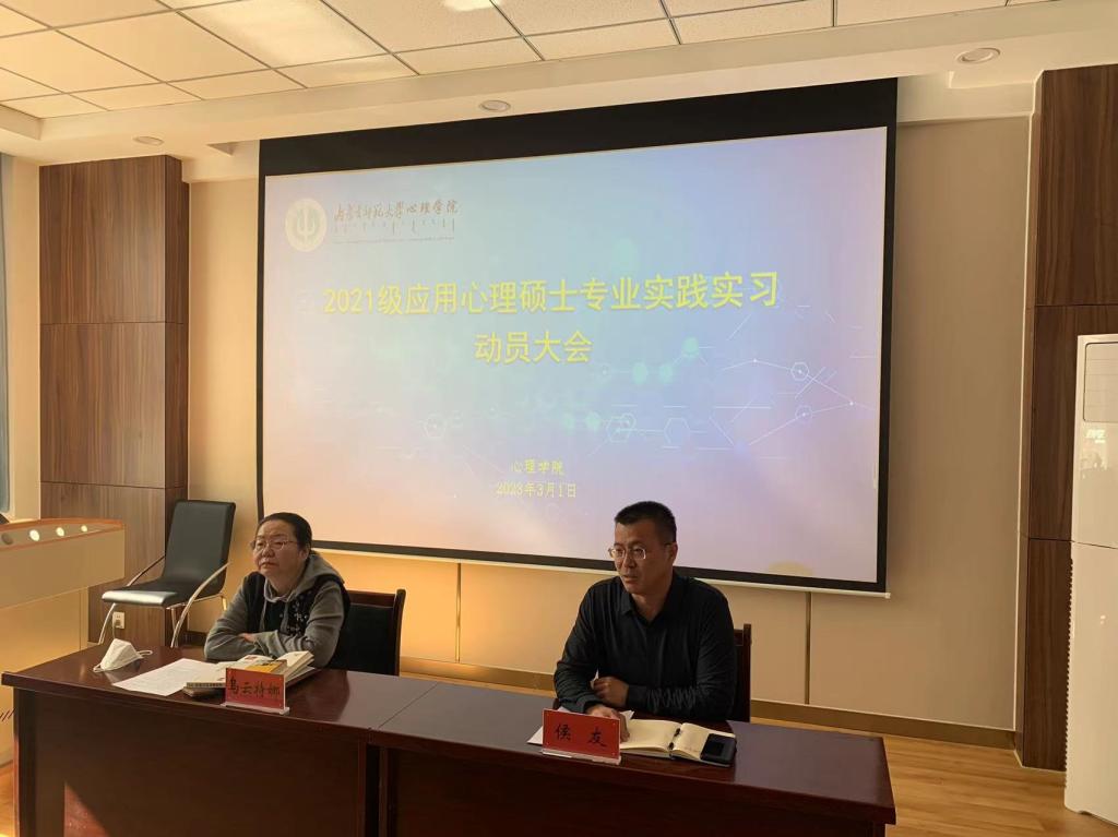 3月1日上午,bat365召开2021级应用心理专业硕士研究生实习实践动员会,院长乌云特娜教授、副院长侯友副教授,部分指导教师、班主任老师及2021级应用心理专业全体研究生参加动员会。