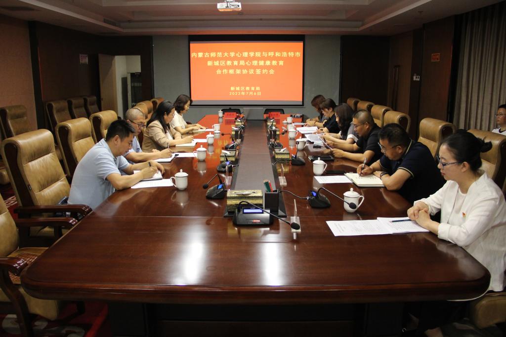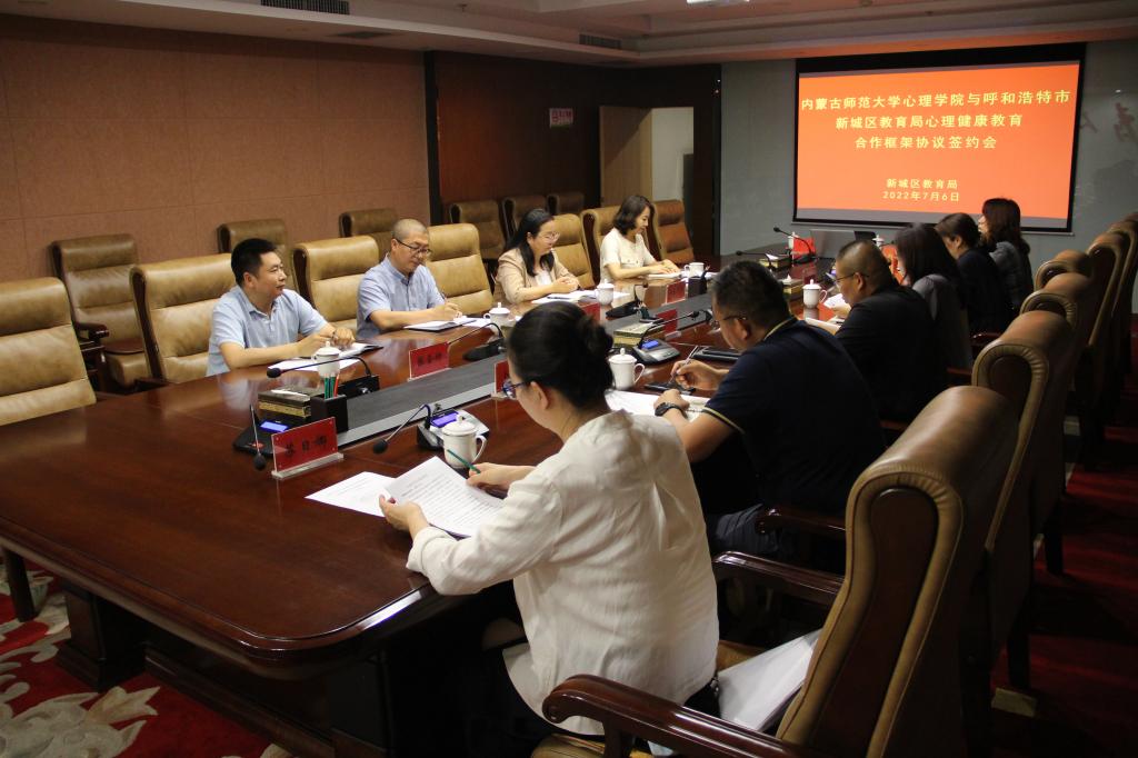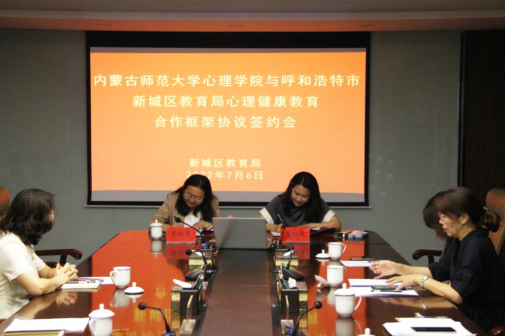 为进一步加强实践教学,提升人才培养质量,促进毕业生高质量就业,发挥学科专业优势,助力社会心理服务体系建设,7月6日下午,bat365与新城区教育局心理健康教育合作框架协议签约暨bat365中文官方网站教育实践与就业基地挂牌仪式隆重举行。新城区教育局党组书记、局长黄咏梅,新城区教育局副局长商辉、郝素兰、卜二军,新城区教育局机关纪委书记武爱珍;bat365中文官方网站院长乌云特娜,院党委副书记、副院长张晓阳,心理学系系主任杨晓峰,学生工作与就业办公室主任张金钟等参加会议。