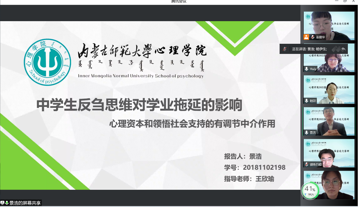 答辩中,同学们基本能运用所学理论知识,结合科学研究方法进行论证研究,反映出对所学专业的关注度与敏感度,语言文字表达规范、流利、清晰,初步具备了科研能力。答辩委员会针对同学们的网上汇报和答辩提出了专业性的指导。线上答辩过程井然有序。