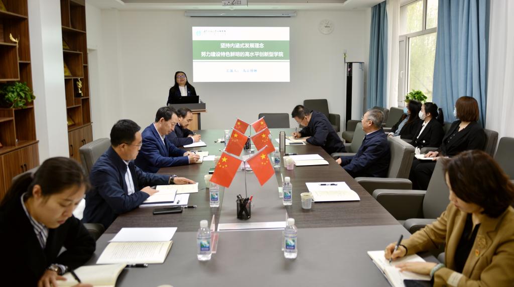 院长乌云特娜从学院概况、人才培养、学科建设、科学研究、师资队伍及社会服务等方面进行了汇报,同时分析了当前存在的主要问题及下一步改进措施和目标。