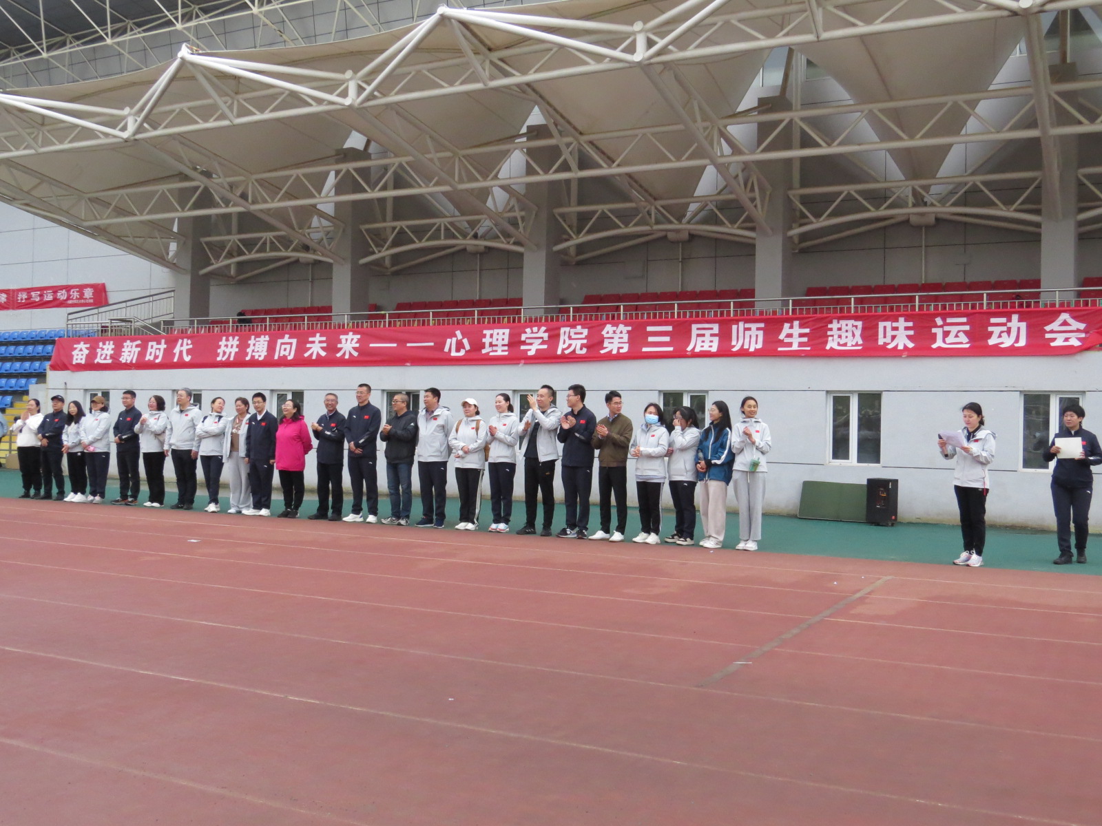 bat365党委书记侯友在开幕式上致辞。他回顾了一年来在bat365师生共同努力下所取得的优异成绩,并指出,长期以来,学院始终将体育竞赛活动视为全面推进素质教育的重要环节,并给予高度重视,本次趣味运动会不仅是对bat365体育工作的一次全面检阅,更是师生运动素质和精神风貌的一次集中展示,从而更好地促进团队凝聚力,增加师生之间的交流沟通,缓解师生学习、工作压力。希望通过本次运动会的举办,能够在全院范围内营造崇尚健康、热爱运动的良好氛围,在体育活动中享受乐趣、增强体质、完善人格、锤炼意志,共同创造精彩人生。