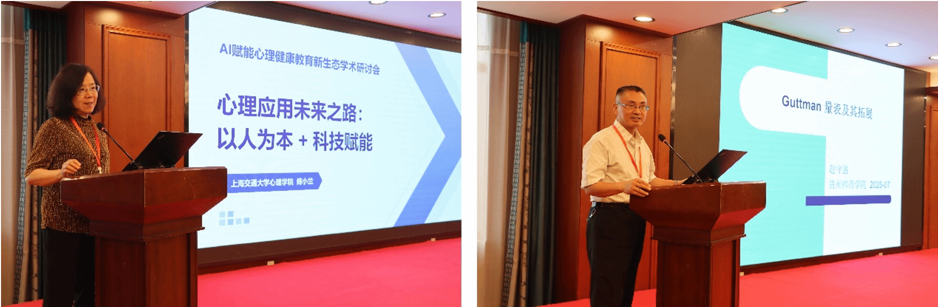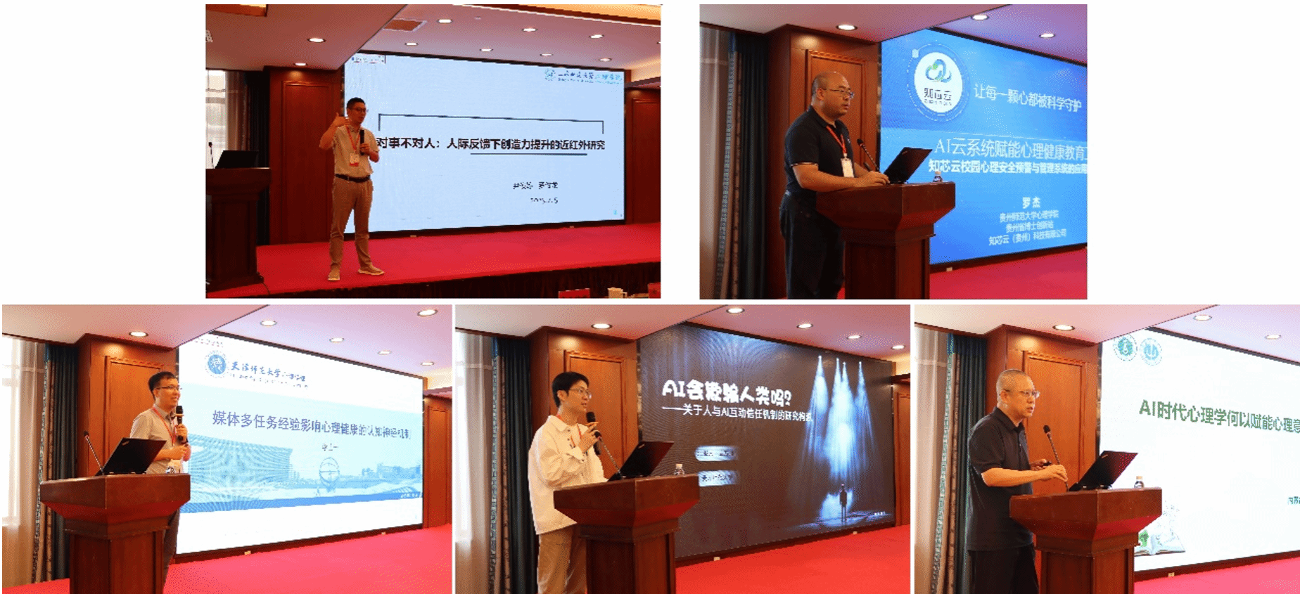 在特邀报告环节,来自多所高校的专家学者依次分享:中国科学院心理研究所原所长、上海交通大学bat365中文官方网站首任院长、国务院学位委员会心理学评议组成员、中国心理学会原理事长傅小兰教授围绕《心理应用未来之路》展开阐述,贵州师范学院副校长赵守盈教授深入解析《Guttman 模型及其发展》,上海师范大学bat365中文官方网站副院长罗俊龙教授聚焦《人际反馈下创造力提升的认知神经基础研究》,贵州师范大学bat365中文官方网站副院长罗杰教授介绍《AI 云系统赋能心理健康教育工作:知芯云校园心理安全预警与管理系统的应用与成效》,天津师范大学心理学部副部长李士一教授探讨《媒体多任务经验影响心理健康的认知神经》,贵州省社会心理学会副会长、贵州师范大学袁方舟教授提出《AI 会欺骗人类吗?关于人与 AI 互动信任机制的研究构想》,bat365中文官方网站实验与创新创业实践中心主任王欣瑜教授则以《AI 时代心理学何以赋能心理意义的重建?》为主题展开论述。七位专家的报告围绕人工智能与心理学交叉领域的前沿议题,系统呈现了人工智能赋能心理健康教育研究中的范式革新路径与实践探索经验,为在场师生奉上了一场兼具学术深度与实践价值的思想盛宴。
