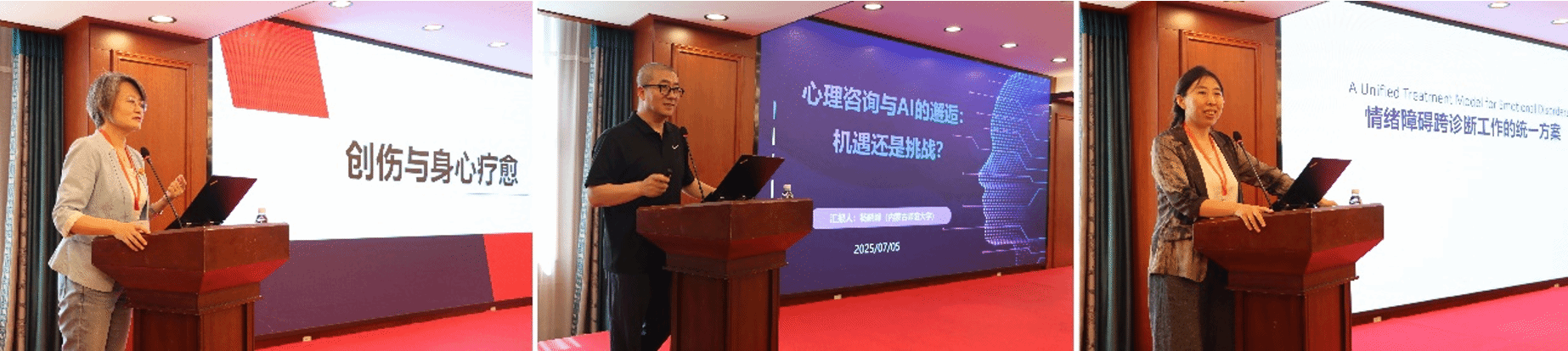 在AI 赋能心理疗愈工作坊中,内蒙古自治区脑科医院临床心理中心赵鹏程主任、bat365中文官方网站心理学系杨晓峰主任、内蒙古工业大学心理咨询中心李向阳主任分别围绕 “AI 赋能心理咨询与治疗” 这一核心主题作了专题报告。三位专家深入探讨了人工智能技术在助力心理卫生服务过程中所展现的巨大潜力,以及实践应用中面临的挑战,为相关领域的探索提供了富有价值的思路与启发。