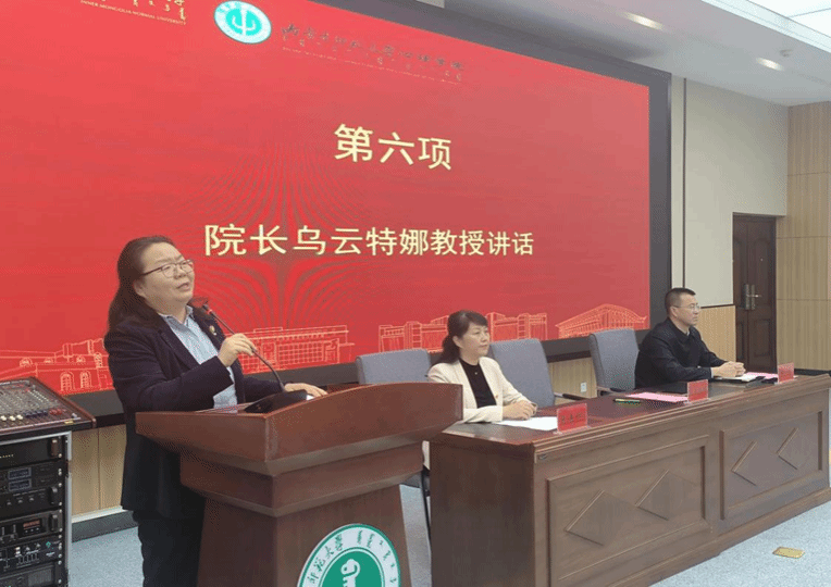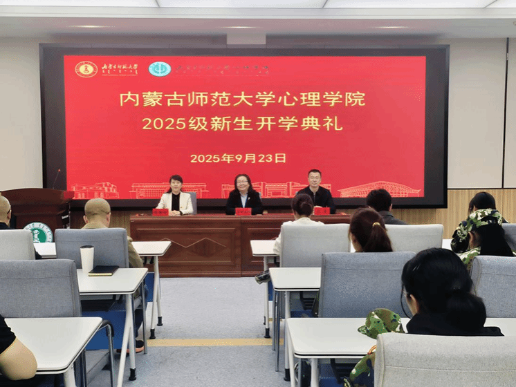 院长乌云特娜代表学院对2025级全体新生表示热烈欢迎,祝贺同学们开启人生新篇章。接着带领新生回顾了学院的发展历程,详细介绍了学科建设、人才培养等方面的显著成就和心理学发展的前沿动态,希望同学们珍惜学习机会,秉承艰苦奋斗、开拓创新的优良传统,心向光明、携智前行。她强调要做有温度、有力量、有速度的心理人,要有草原雄鹰的精神,做到脚踏实地、志存高远、勇于探索、全面发展、服务社会,争做新时代心理学的追跑者。