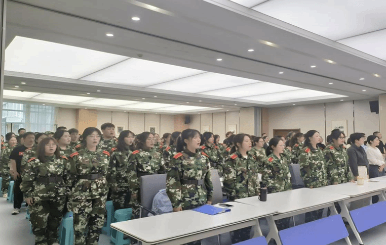 开学典礼在庄严的国歌声中正式开始。伴随着激昂的旋律,全场师生肃然而立,齐声高唱国歌。
