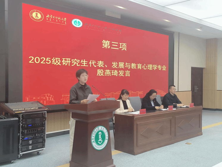 2025级发展与教育心理学专业殷燕琦作为研究生新生代表发言。她分享了自己对于“真正有价值的研究”的理解和思考,鼓励同学们要始终保持对现实世界的好奇与关注,紧跟时代需求,为心理学的发展贡献青年学子的力量。