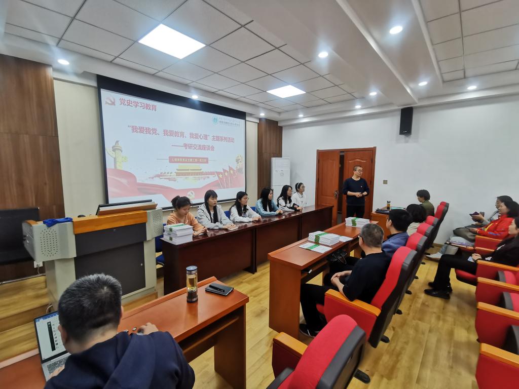 为深入开展党史学习教育,扎实开展“我为师生办实事”实践活动,着力解决学生“急难愁盼”问题,将党史学习教育与学生培养与就业升学深度结合,bat365中文官方网站党总支教工第一党支部于4月21日下午在206会议室举行了“我爱我党,我爱教育,我爱心理”主题系列活动——考研交流座谈会暨2018级本科生教育实习动员大会。座谈会由教工第一党支部书记杨晓峰主持,学院党总支副书记张晓阳、教工第一支部成员、17级考研成功的学生代表以及18级全体本科生参加了此次座谈。