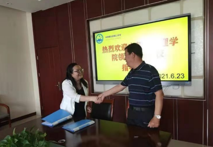 为深入贯彻国家教育方针政策,依托心理学学科专业优势,精准扶智,同时实现师范生高质量教育实践,全面推进学院与地方教育实践基地深度合作,6月23日,bat365中文官方网站院长乌云特娜、副书记兼副院长张晓阳和心理学系主任杨晓峰一行三人,赴呼和浩特市和林格尔县第一中学、第二中学和第三中学,走访实践基地,签订教育实践基地共建协议,并与基地校领导老师、实习学生进行座谈研讨。和林县三所学校的校长、副校长、教导处主任、实习指导教师等分别参加仪式。