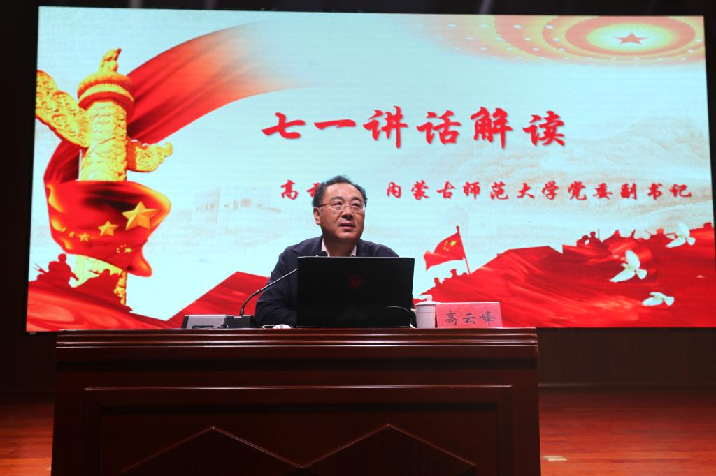 9月23日下午,校党委副书记高云峰在盛乐校区图书馆二楼报告厅为bat365中文官方网站、旅游学院、历史文化学院、文学院、政府管理学院和科学技术史研究院全体师生党员作“习近平总书记在庆祝中国共产党成立100周年大会上的重要讲话精神解读”专题党课。旅游学院党委书记郭明华主持党课。